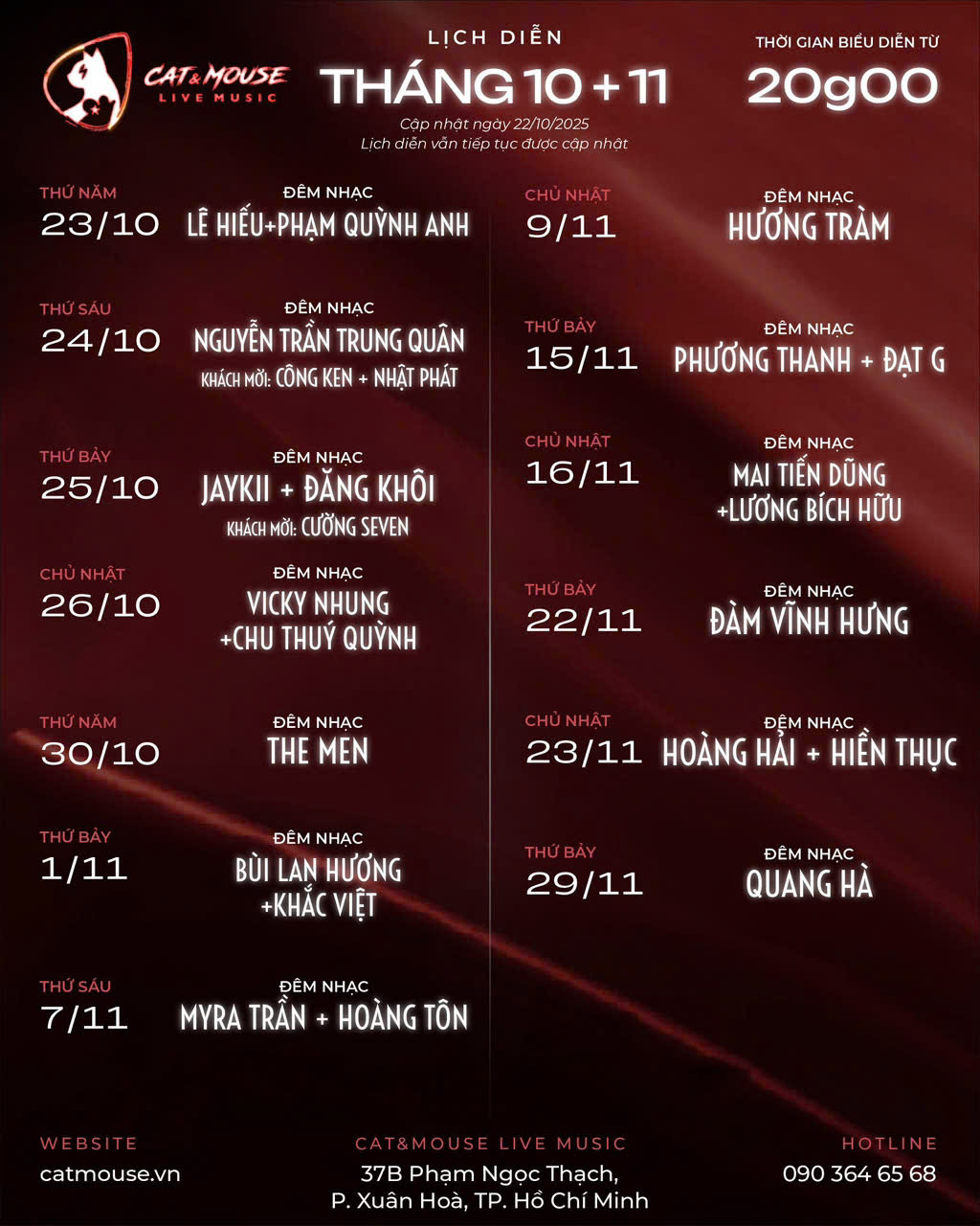 Lịch diễn phòng trà Mây Sài Gòn tháng 10 (Mây Lang Thang)